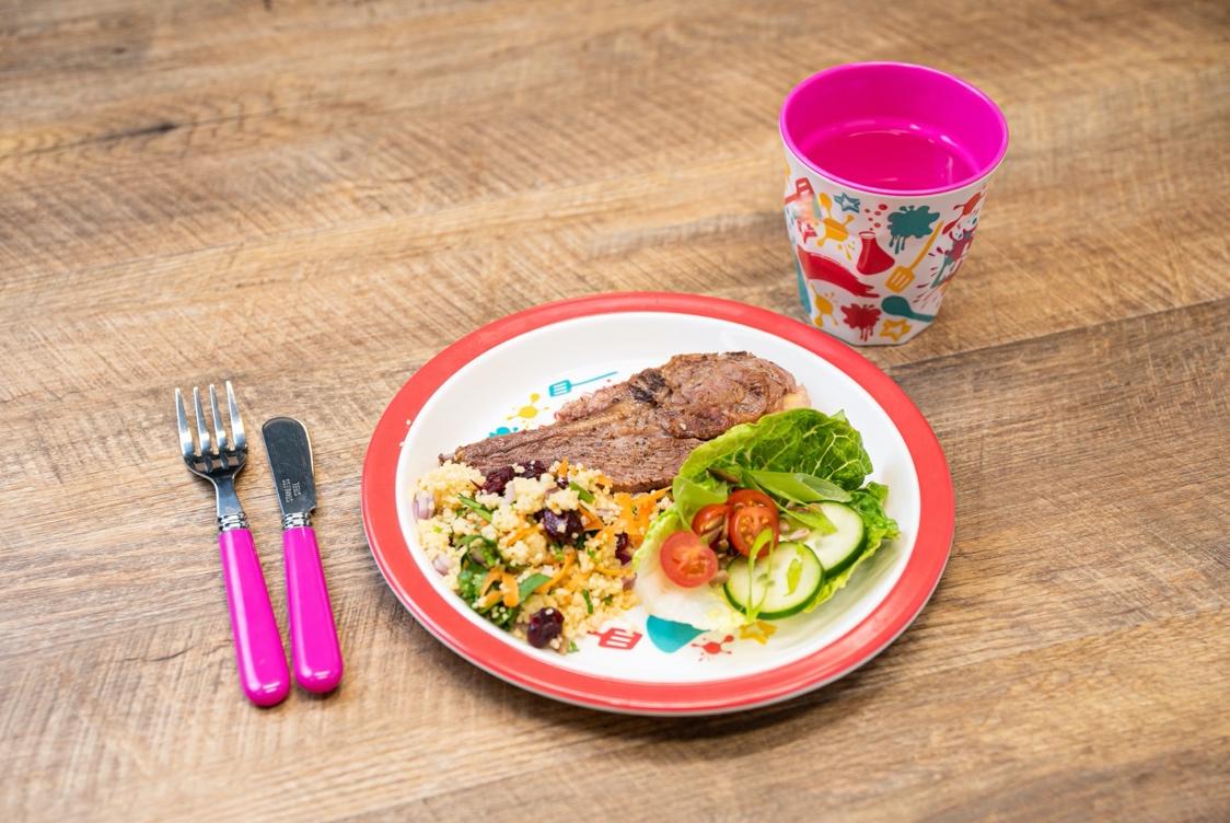 Divide the lamb chops, couscous and salad amongst the plates.